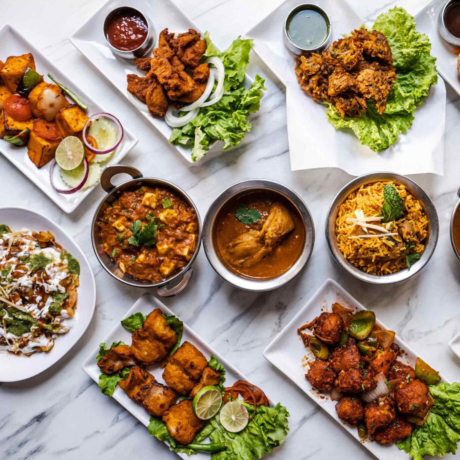 Tandoori Favorites – Love Kebabs? Here’s a selection of perfectly grilled vegetarian and non-vegetarian kebabs, cooked in a traditional clay oven.
